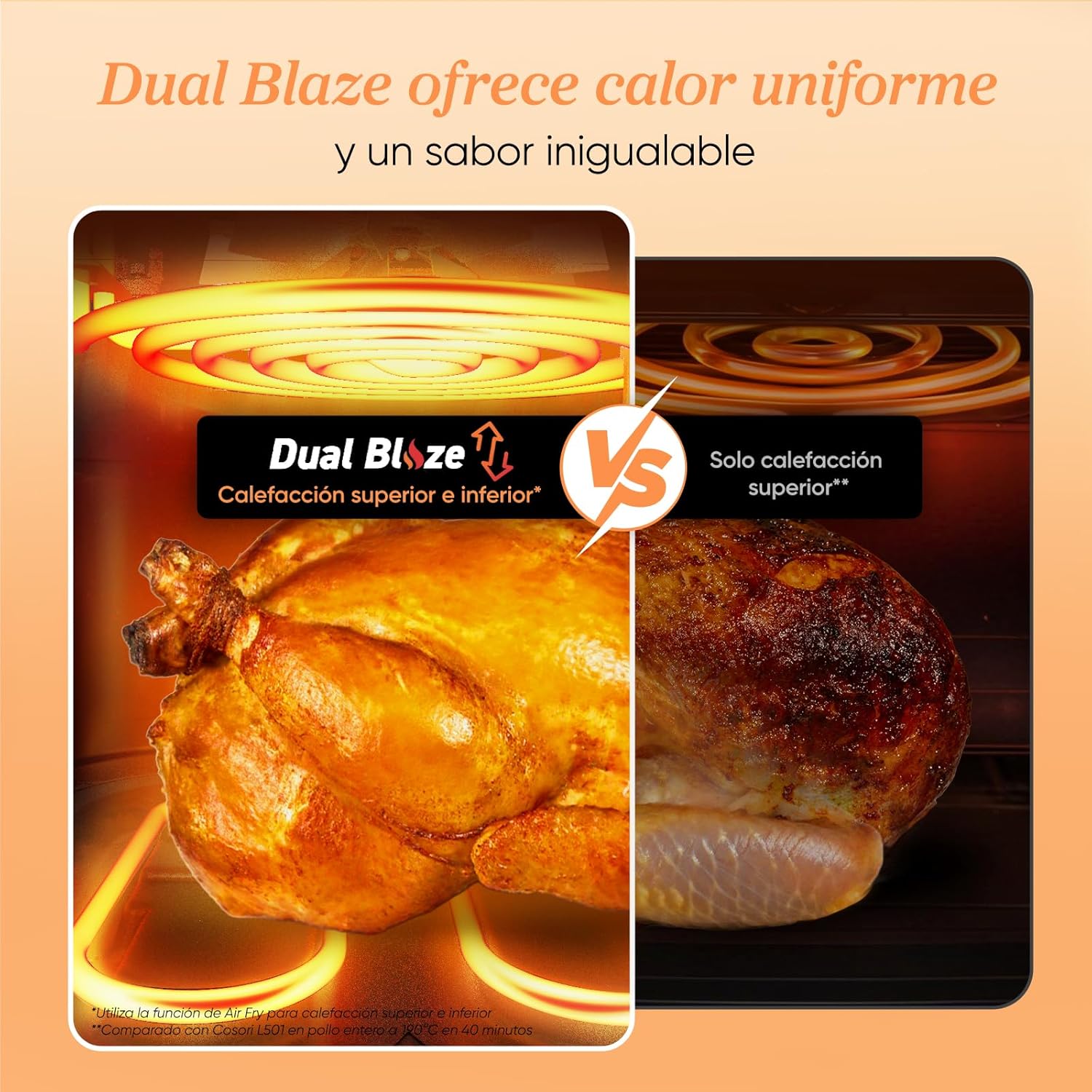 | Características especiales | Apagado automático, Control de temperatura:75-205℃, Funciones de zona dual, Programable: horneado, air fry, asar y parrilla, Temporizador:1min-24h |