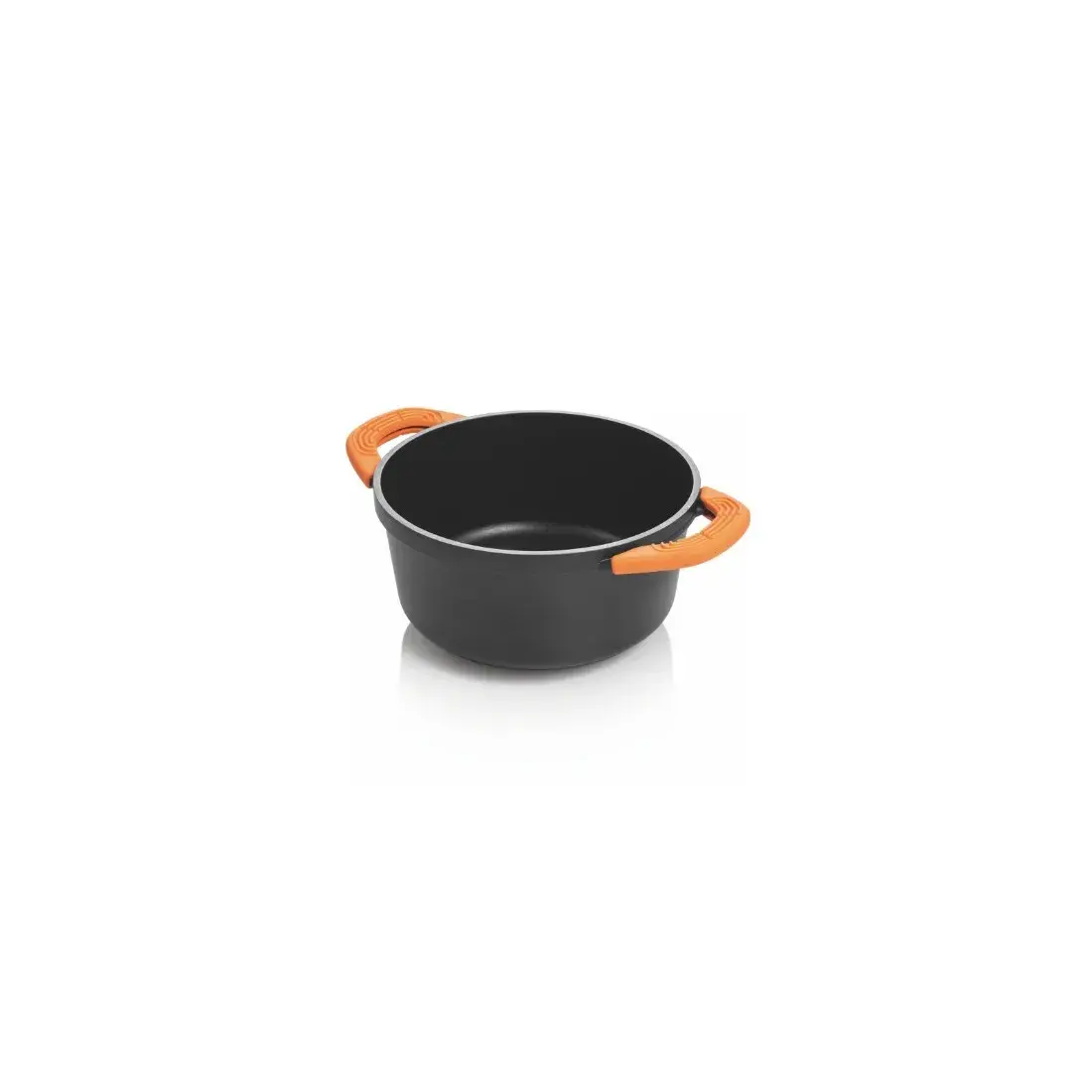 Sólida cacerola con recubrimiento antiadherente interior y exterior de primera calidad. Tiene fondo de inducción, adecuado para todo tipo de placas de cocina y para horno. Asas de silicona resistente al calor extraibles para un manejo seguro y fácil limpieza. Apto para lavavajillas.