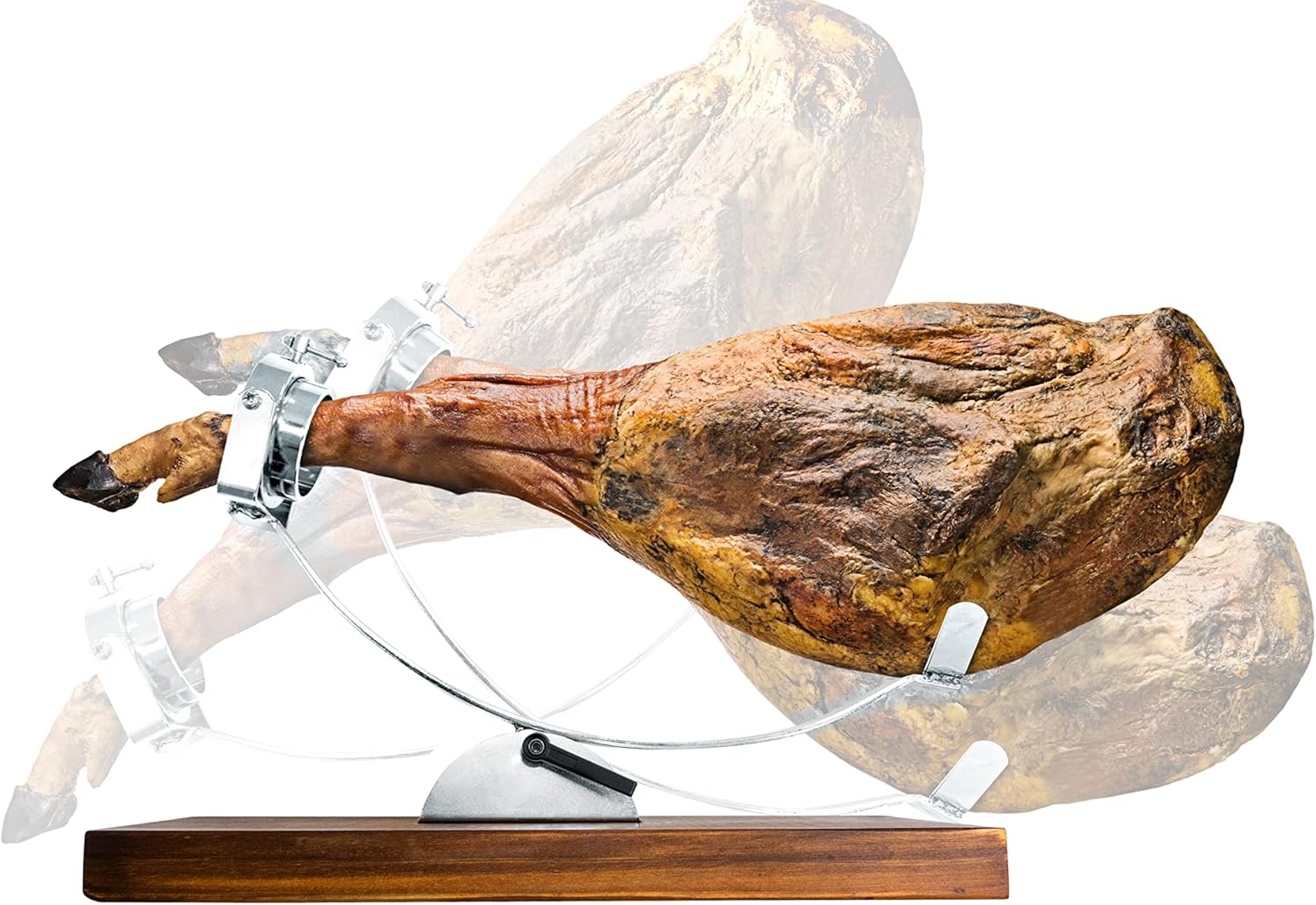Ajusta el jamonero a la posicion deseada para que el jamón no se caiga.